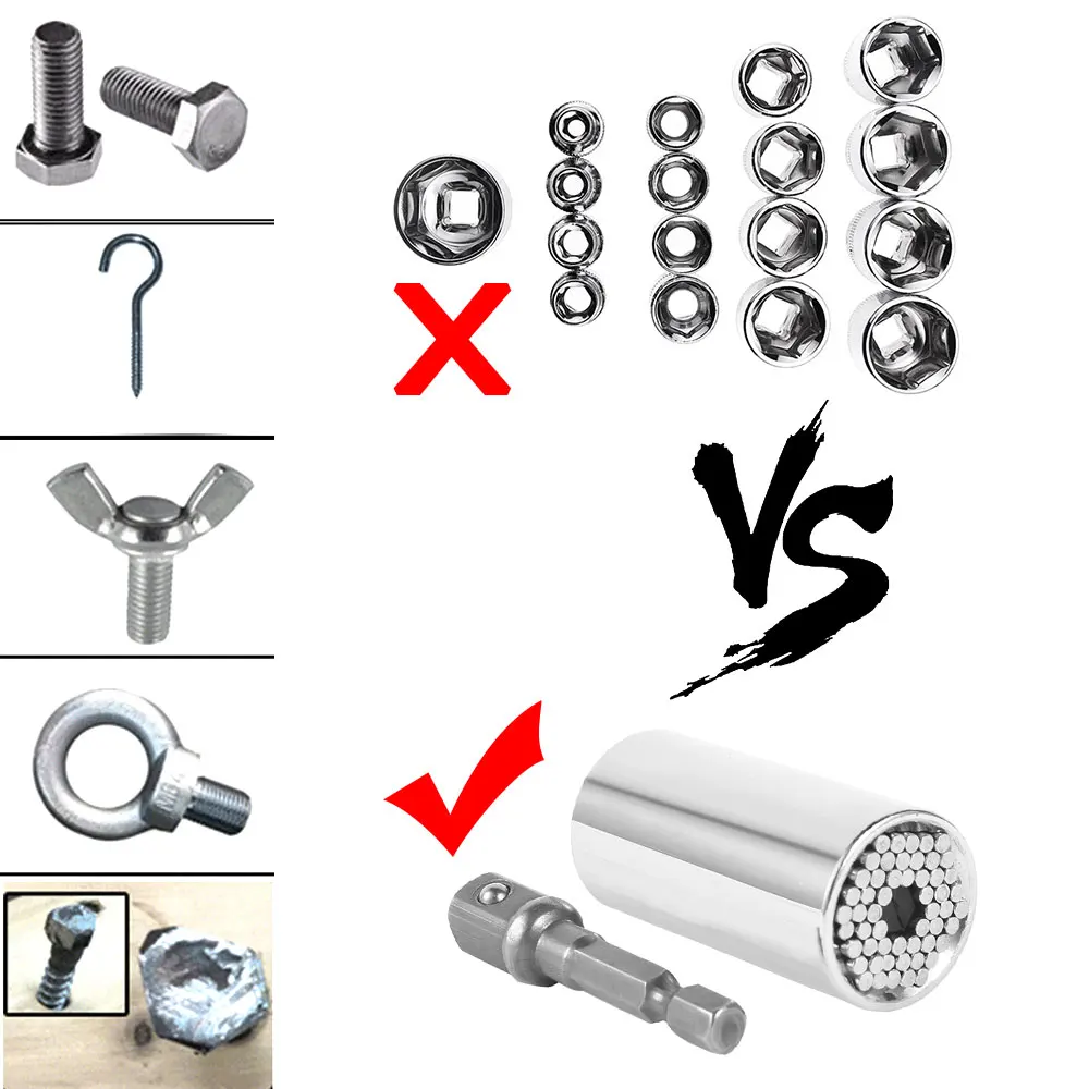 The Universal Torque Wrench Head Set Socket is easy to disassembly and assembly all kinds of screws, hooks, lag screws, and bolt heads etc. It can be used in automotive industry, household maintenance, manufacturing industry,construction and other industries.